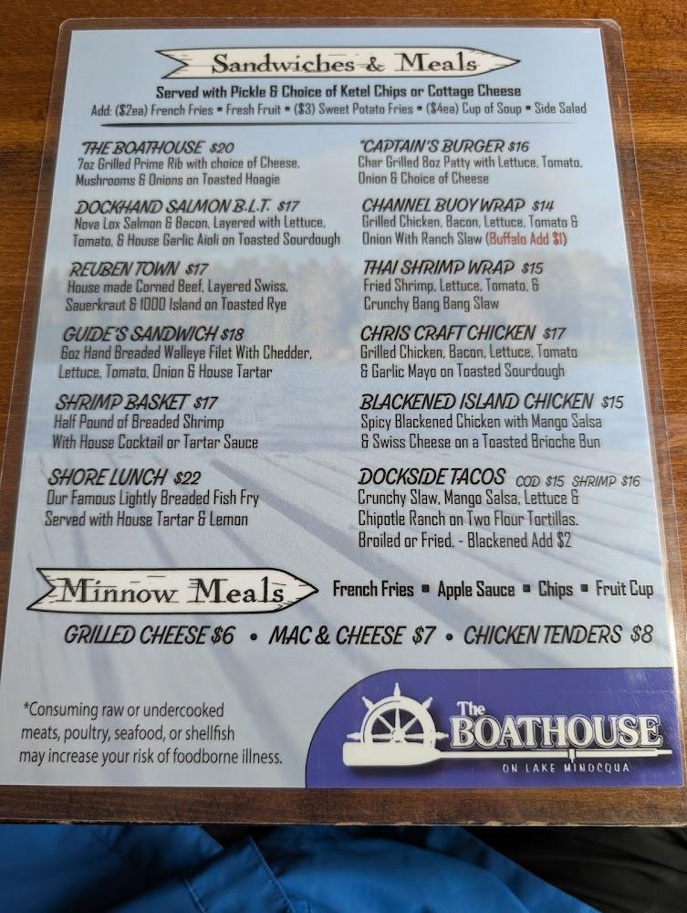 Welcome to The Boathouse, your go-to destination in Minocqua, WI for delicious American cuisine and a cozy atmosphere. Nestled at 305 W Park Ave, we offer a diverse menu featuring favorites like our crispy fish and chips, savory chicken sandwiches, and hearty steaks. Enjoy your meal on our inviting terrace or grab some takeout to savor by the lake. With live music, sports screenings, and a well-stocked bar including cocktails and wines, there’s always something happening! Family-friendly and accessible, we’re ready to welcome you for lunch, dinner, or a late-night bite. Experience the perfect blend of food, fun, and relaxation!